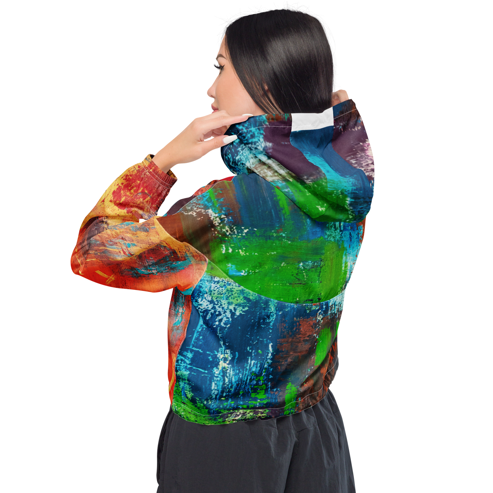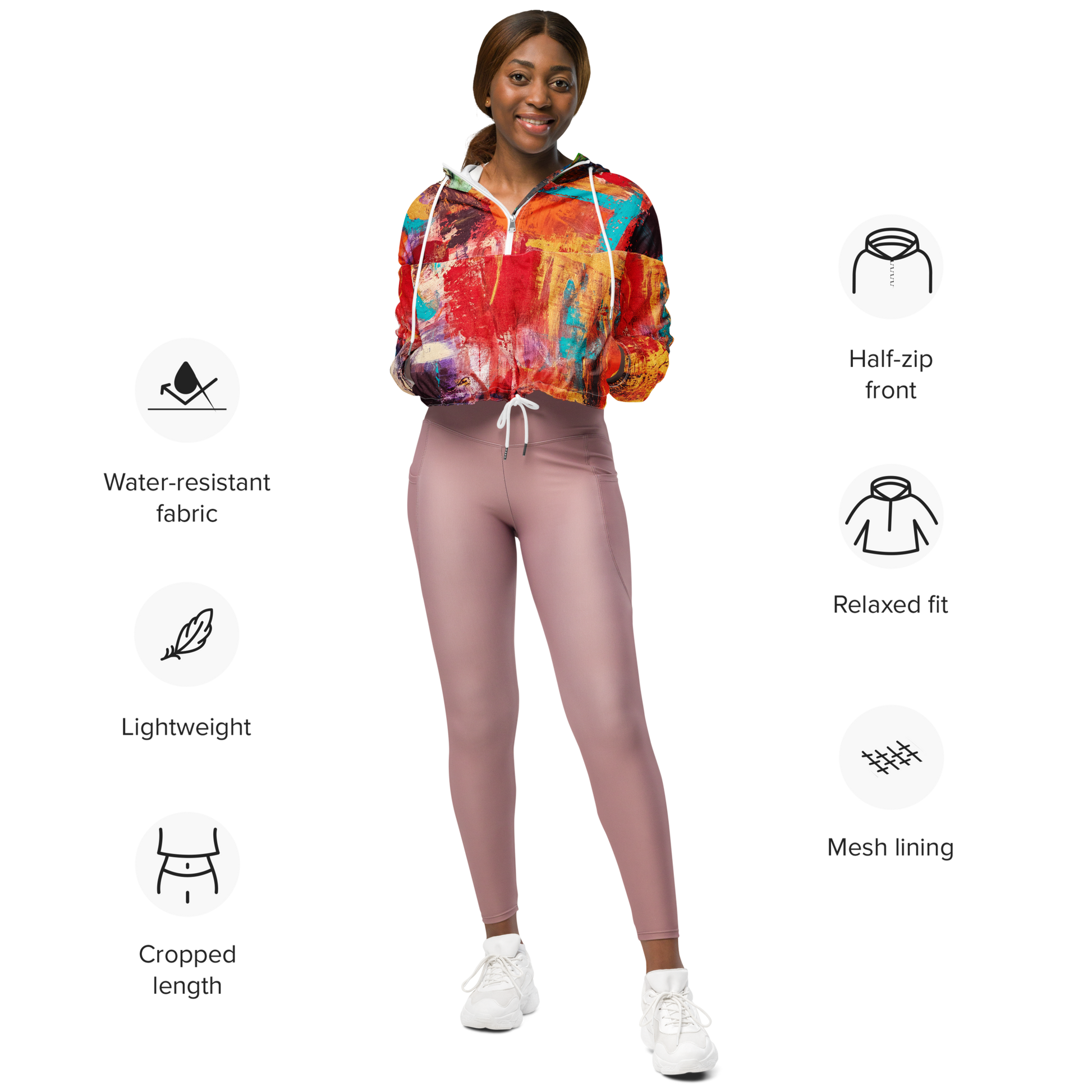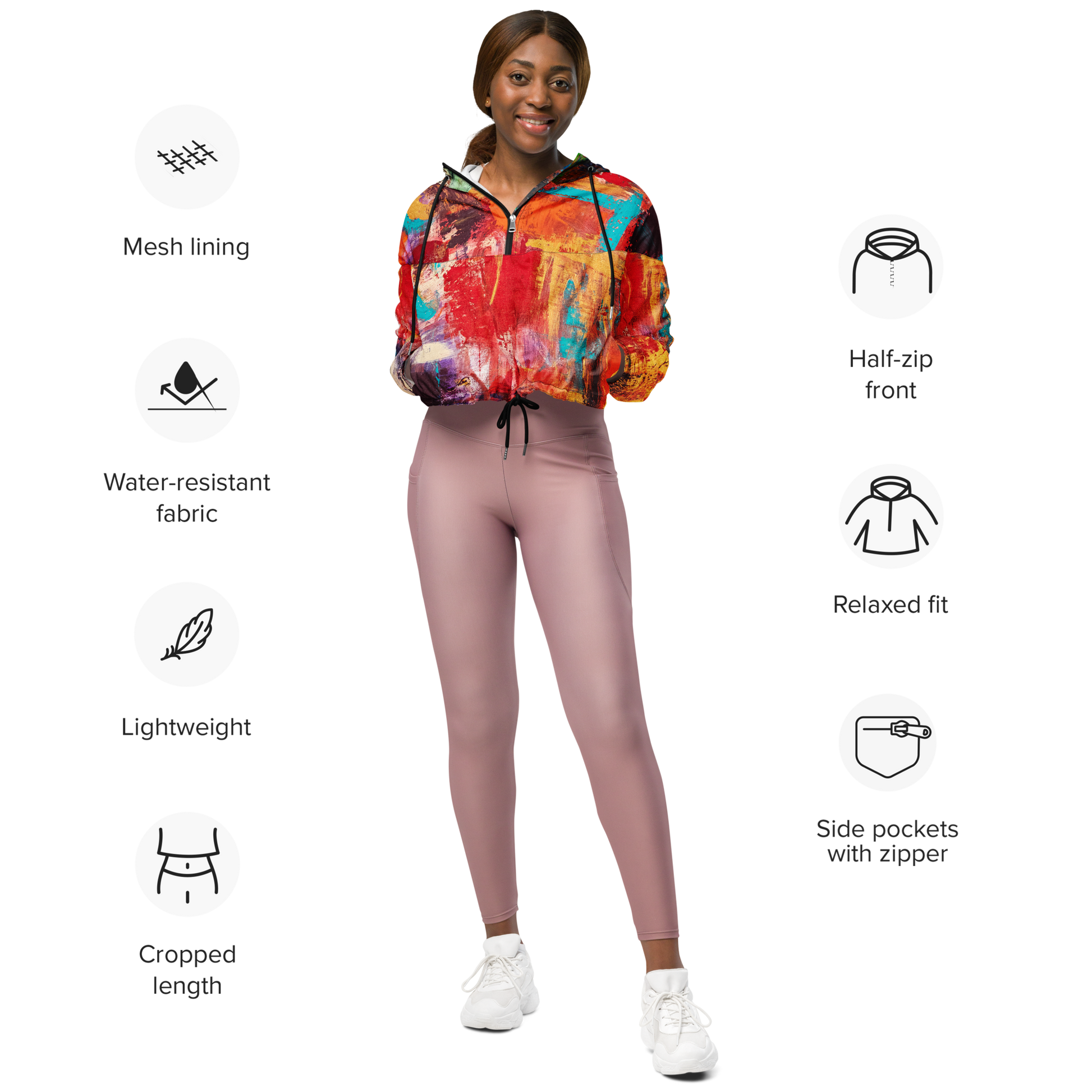 Hike in style without the rain getting in the way—this cropped windbreaker is lightweight, waterproof, and suitable for every kind of adventure. Features include side-slit pockets, breathable mesh lining, and adjustable drawcords on the hood and waist to support all your stylish outdoor looks.