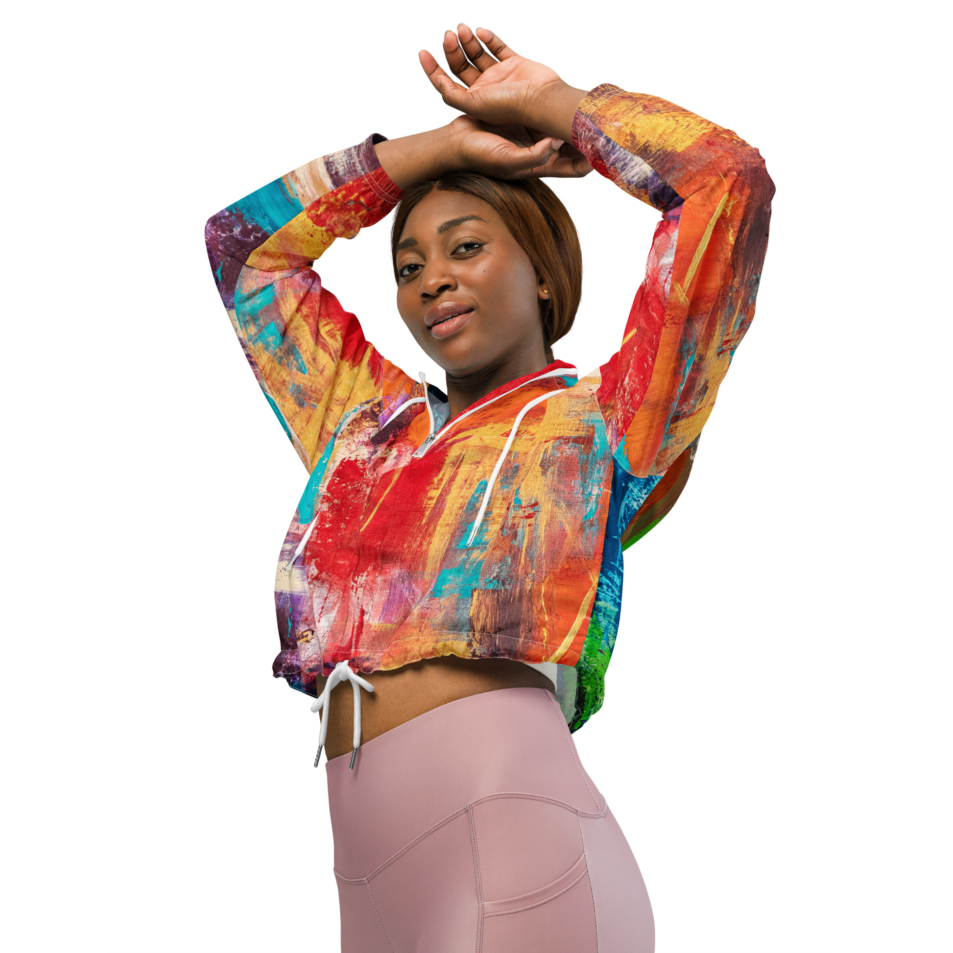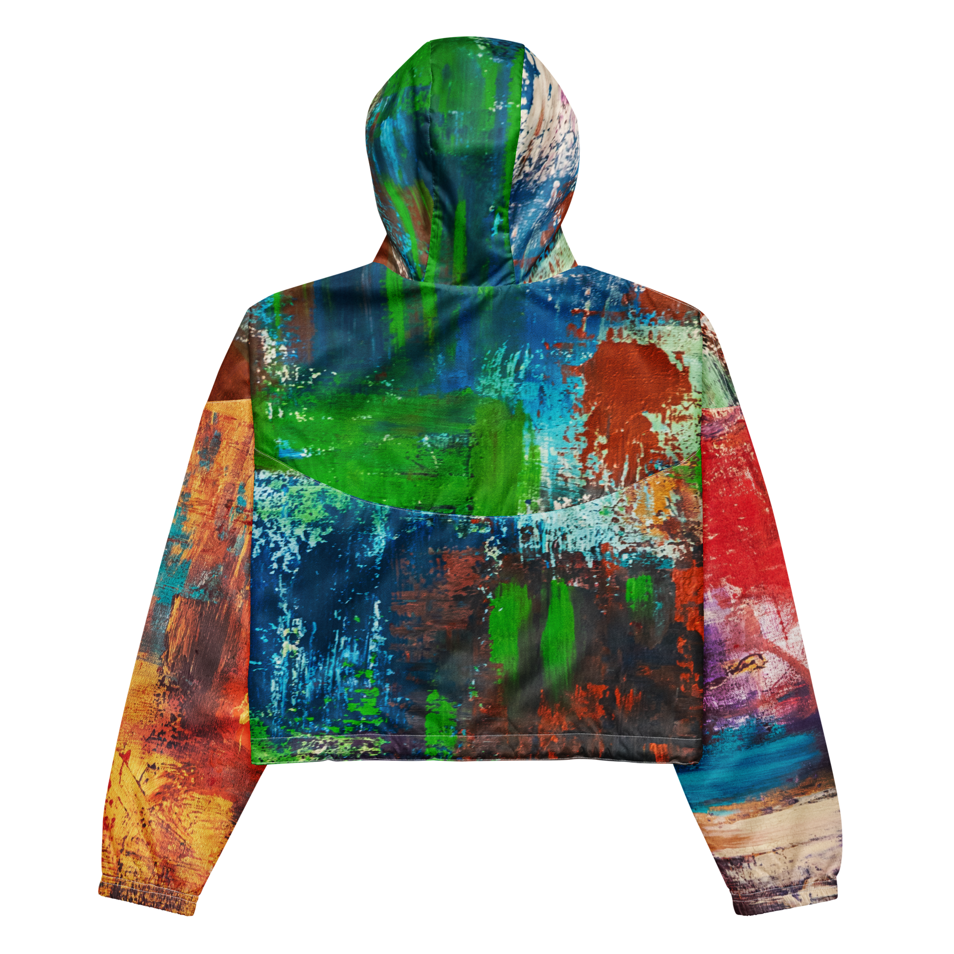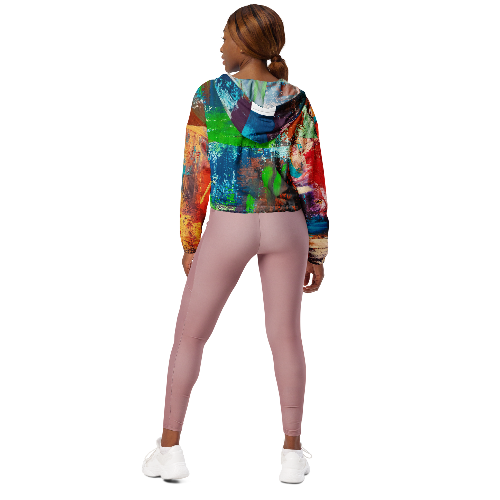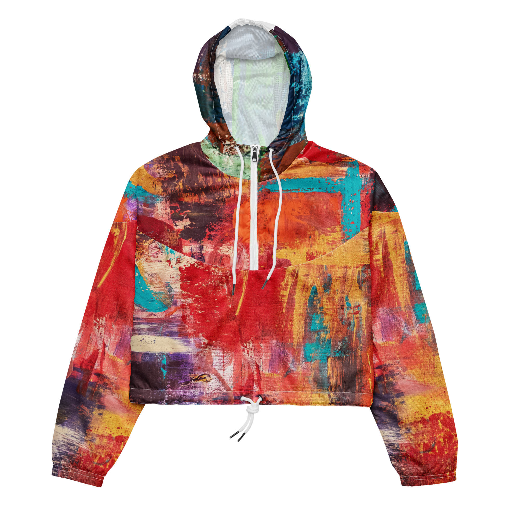 Hike in style without the rain getting in the way—this cropped windbreaker is lightweight, waterproof, and suitable for every kind of adventure. Features include side-slit pockets, breathable mesh lining, and adjustable drawcords on the hood and waist to support all your stylish outdoor looks.